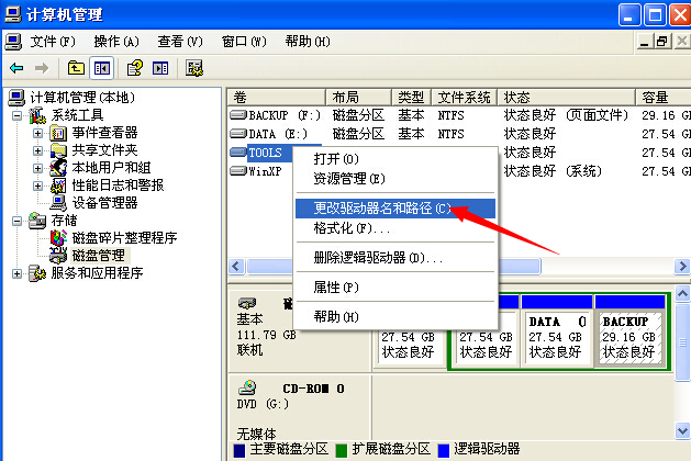 更改盤符的卷標-右擊該盤符-更改驅動器號和路徑-指派驅動器號。 ![]()