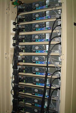 機架式服務器是一種外觀按照統一標準設計的服務器,配合機柜統一使用。可以說機架式是一種優化結構的塔式服務器,它的設計宗旨主要是為了盡可能減少服務器空間的占用,而減少空間的直接好處就是在機房選擇機架式服務器托管的時候價格會便宜很多。 機架服務器的寬度為19英寸,高度以U為單位(1U=1.75英寸=44.45毫米),通常有1U,2U,3U,4U,5U,7U幾種標準的服務器。機柜的尺寸也是采用通用的工業標準,通常從22U到42U不等;機柜內按U的高度有可拆卸的滑動拖架,用戶可以根據自己服務器的標高靈活調節高度,以存放服務器、集線器、磁盤陣列柜等網絡設備。服務器擺放好后,它的所有I/O線全部從機柜的后方引出(機架服務器的所有接口也在后方),統一安置在機柜的線槽中,一般貼有標號,便于管理。 看看下面的兩張圖片你就明白了為什么要推出機架式服務器了: