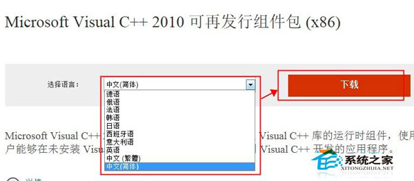 4、在頁面中選擇安裝語言,然后點擊“下載”;