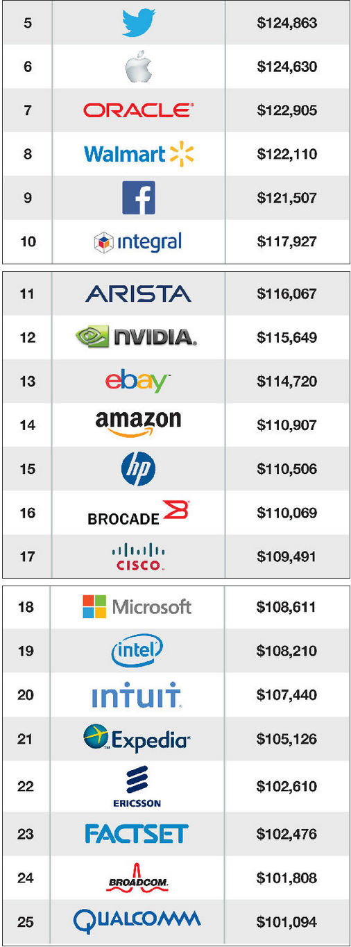 以下為25家頂級(jí)公司的程序要年薪報(bào)告圖