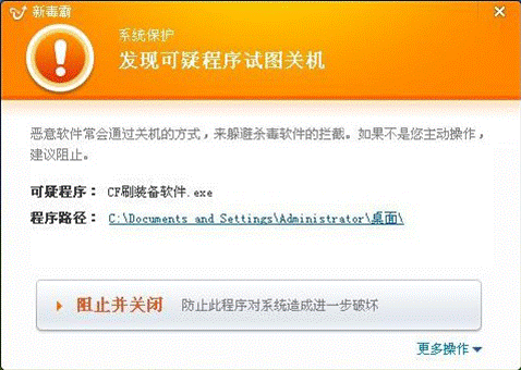 圖7.金山毒霸攔截病毒強(qiáng)制關(guān)機(jī)