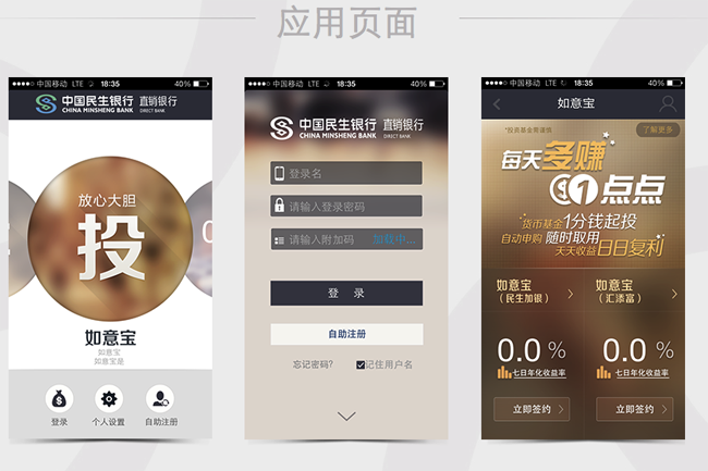 民生直銷銀行還有Android和iOS手機(jī)客戶端,以及微信公眾賬號(hào)。網(wǎng)頁(yè)版上的操作都可以在手機(jī)客戶端上完成,微信公眾賬號(hào)內(nèi)可以查詢賬戶,轉(zhuǎn)入轉(zhuǎn)出資金,查詢?nèi)缫鈱殹?