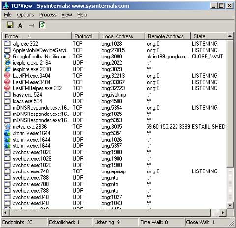 TcpView - TcpViews是一款免費的端口和線程監(jiān)控工具,可以列出當前所有TCP和UDP端口的進程清單,包括本地和遠程地址的TCP連接,其實和系統(tǒng)命令netstat類似,不過是GUI界面的,使用方便,占用資源少,默認字體在中文環(huán)境下很小,需要手動修改。在服務(wù)器上運行的話,默認刷新時間不要用默認的1秒。