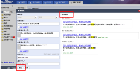 為了從不同側面充分展示企業產品或業務的優勢,建議多寫幾個不同的創意。點擊“確定”保存了創意即可。