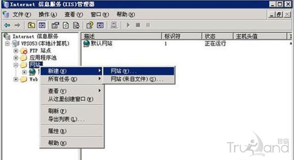 1、打開IIS管理器,“網站”右鍵,新建-> 網站