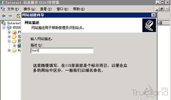 3、網站描述,一般我們寫網站域名,它是網站在IIS里面的標示(名稱)