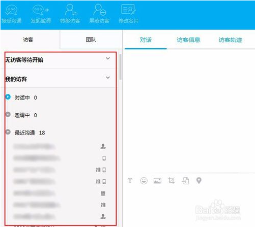 1.有對(duì)話中,邀請(qǐng)中,最近溝通中,等訪客信息。