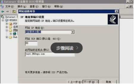 4、這里是比較關鍵的一步,IP地址一般設置“全部未分配”,這樣有個好處:萬一主機變動了IP,你不需要去IIS里面設置,只需要修改下域名解析就可以了。當然,如果你有多個IP,也可以為不同的網(wǎng)站指定不同的IP,端口一般為80,Web服務標準端口。主機頭那里寫你網(wǎng)站的域名,繼續(xù),下一步。