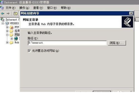 5、設置網(wǎng)站文件的路徑,建議將資料放在D盤,如圖為“d:\wwwroot” 通過“瀏覽”選擇,也可以直接輸入。