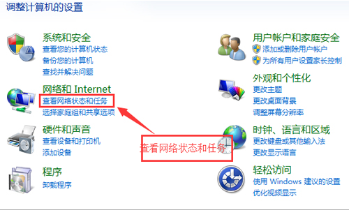 2、進入控制面板設(shè)置頁面,找到網(wǎng)絡(luò)狀態(tài)和任務(wù),點擊進入設(shè)置頁面。