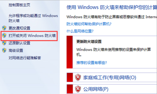 4、在導(dǎo)航欄左側(cè)找到,打開或關(guān)閉Windows 防火墻。