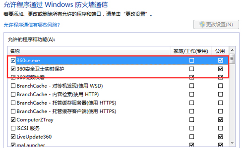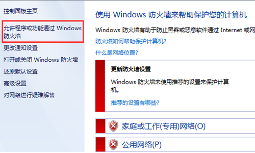 6、我們還可以對防火墻進一步設(shè)置,在左側(cè)導(dǎo)航欄選擇允許程序或功能通過Windows防火墻,我們可以查看那些程序和功能允許通過防火墻,若我們不想某個程序或功能通過防火墻,我們將前面的√去掉即可。 如圖1、圖2所示: