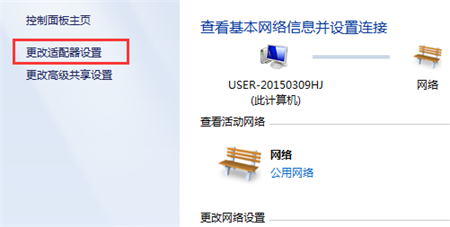 1、打開控制面板→查看網絡狀態和任務→更改適配器設置