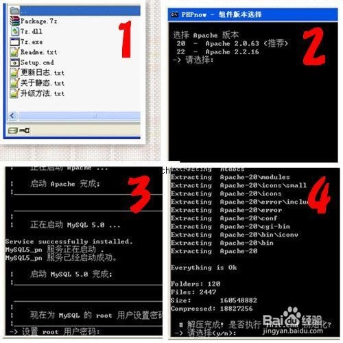 3、PHPNow真的很簡單,簡單到安裝程序是用RAR做的一個自解壓程序。自釋放后快捷方式也沒有,你必須自己找到那個文件存放的文件夾,然后運 行 Init.cmd這個程序來初始化。初始化過程中提示設置密碼,因為是在CMD命令行中,只設計了一次密碼輸入,沒有密碼確認項,所以請設置的時候千萬小心,不要忘了。它也把式Apache和MySql注冊為服務,開機自啟動。
