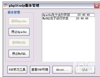 4、PHPStudy不一樣,它含有IIS+PHP和Apache+PHP,軟件推薦設置是后者。在任務托盤里也有圖標,可以打開面板來看服務運行狀態,也很簡潔。