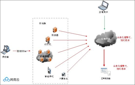 Service,中文意思為“分布式拒絕服務”,就是利用大量合法的分布式服務器對目標發送請求,從而導致正常合法用戶無法獲得服務。通俗點講就是利用網絡節點資源如:IDC服務器、個人PC、手機、智能設備、打印機、攝像頭等對目標發起大量攻擊請求,從而導致服務器擁塞而無法對外提供正常服務,只能宣布game