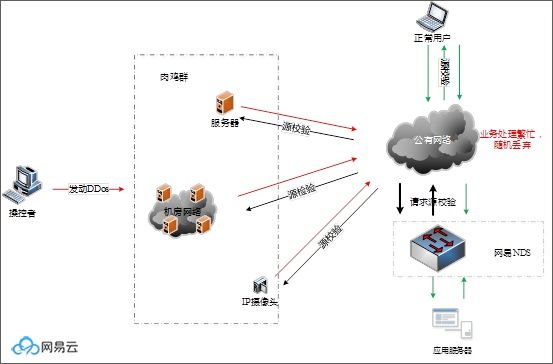 從服務的角度來說DDoS防護本質上是一場以用戶為主體依賴抗D防護系統與黑客進行較量的戰爭,在整個數據對抗的過程中服務提供者往往具有絕對的主動權,用戶可以基于抗D系統特定的規則,如:流量類型、請求頻率、數據包特征、正常業務之間的延時間隔等。基于這些規則用戶可以在滿足正常服務本身的前提下更好地對抗七層類的DDoS,并減少服務端的資源開銷。詳細示意圖如下: