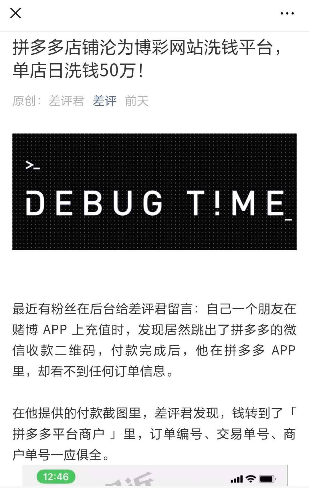 風(fēng)控負(fù)責(zé)人表示:差評(píng)這位寫手將拼多多作為了“線上洗錢”的主流渠道和博彩網(wǎng)站收款的“支付通道”,既犯了常識(shí)性錯(cuò)誤(拼多多不涉及任何支付通道行為)又對(duì)平臺(tái)進(jìn)行了“觀點(diǎn)先行”之后的精心惡意中傷。