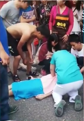 “當(dāng)時,有個女孩子躺在地上,呼吸特別微弱。她的閨蜜在一旁很著急的樣子,但也不知道該怎么辦?!毙祧位貞?,學(xué)過心肺復(fù)蘇的他把手機(jī)交給同伴,就展開了施救。他讓人群散開,保持空氣流通,又讓女孩的閨蜜掐其人中,請一位圍觀者伸手墊著女孩的頭部,自己則十指重疊按壓暈倒女子胸口。