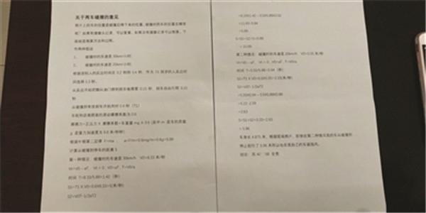 為了證明自己在事故中無責,孫先生令人驚訝地拿出了自己運用了物理知識作出的推算證據,以此物理運算自證無責,說明自己的清白。