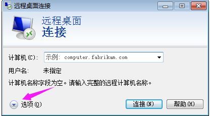 第三步:在彈出的“遠程桌面連接”對話框中單擊下拉“選項”按鈕;